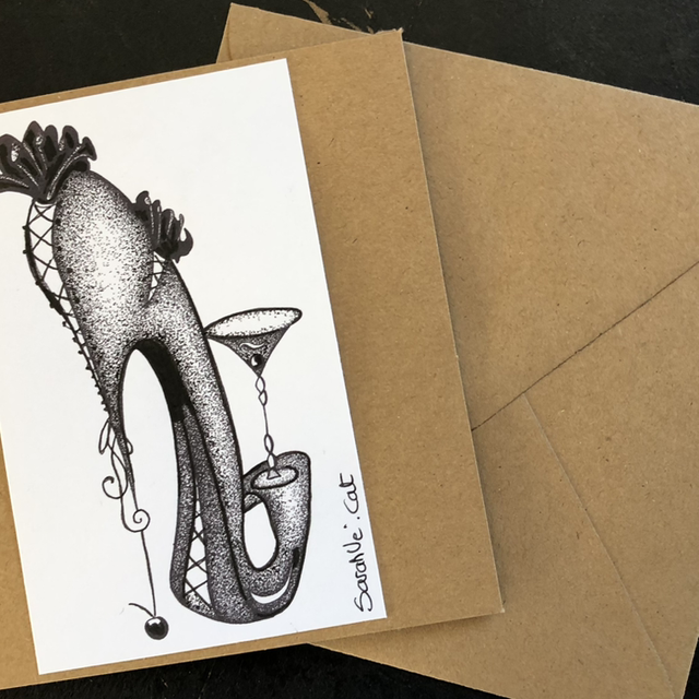 Carte - escarpin champagne cerise - 13,5 x 13,5 cm - enveloppe kraft