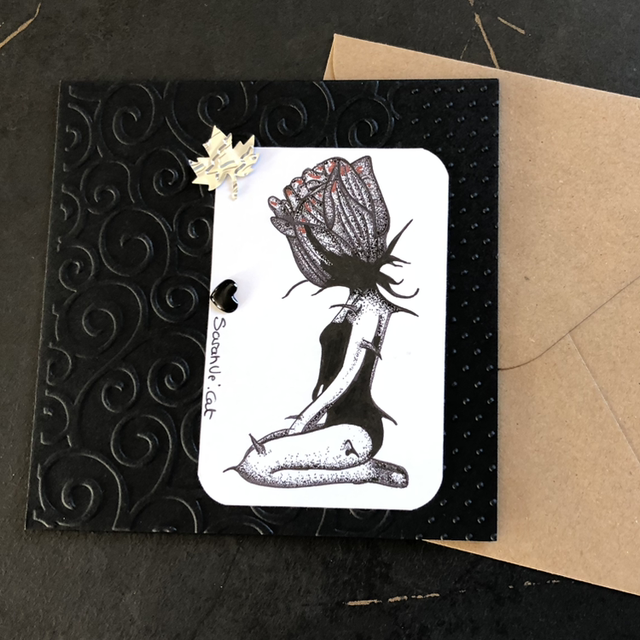 Carte - femme rose épine - 13,5 x 13,5 cm - enveloppe kraft