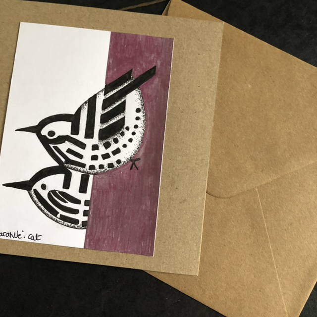 Carte - oiseaux - 13,5 x 13,5 cm - enveloppe kraft