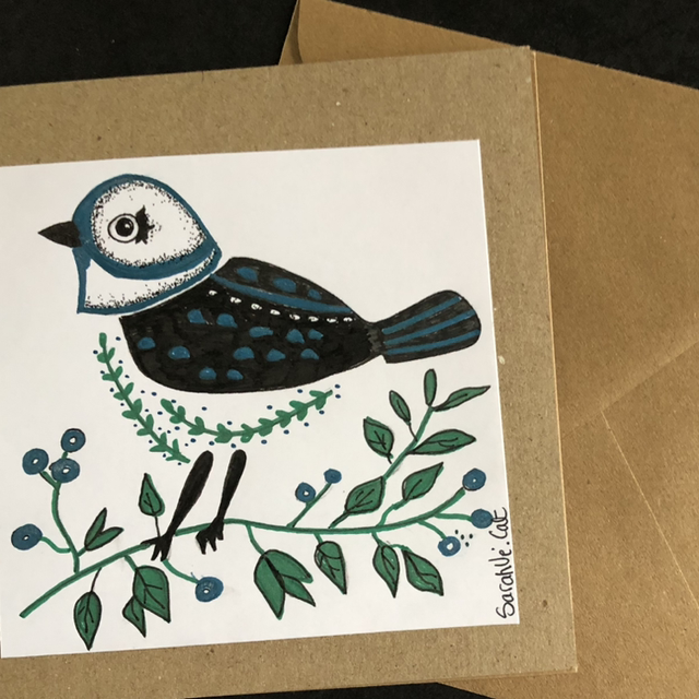 Carte - oiseaux bleu - 13,5 x 13,5 cm - enveloppe kraft