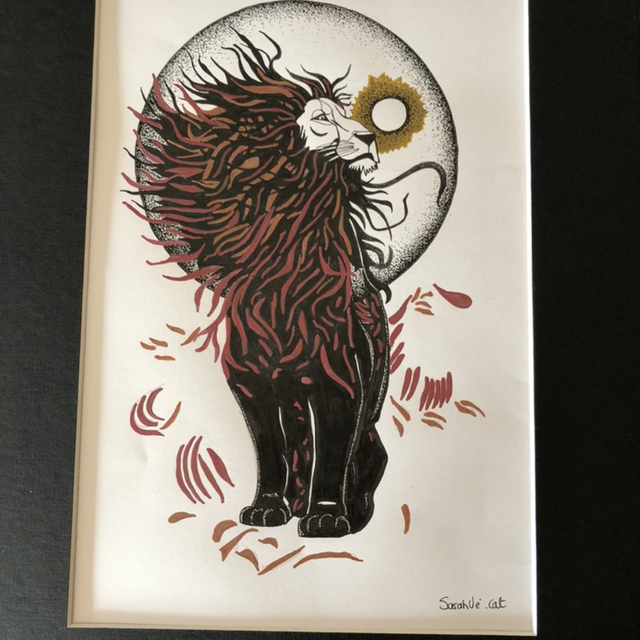 Lion rouge au vent - 30 x 40 cm - encadrement noir